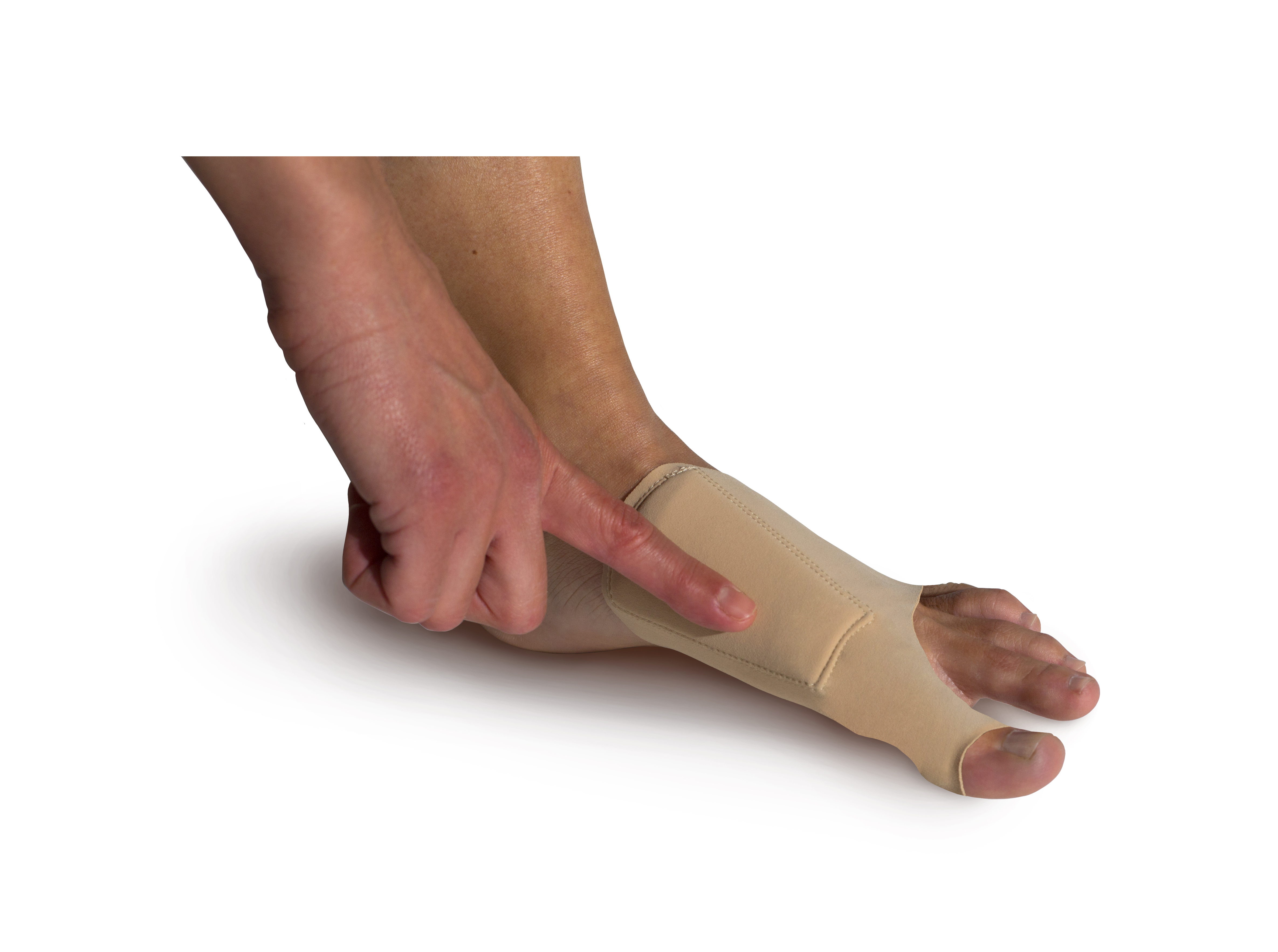 Più precisamente la sua parte concava deve essere posizionata in prossimità e intorno alla deformità ossea senza coprire la parte dolente.
